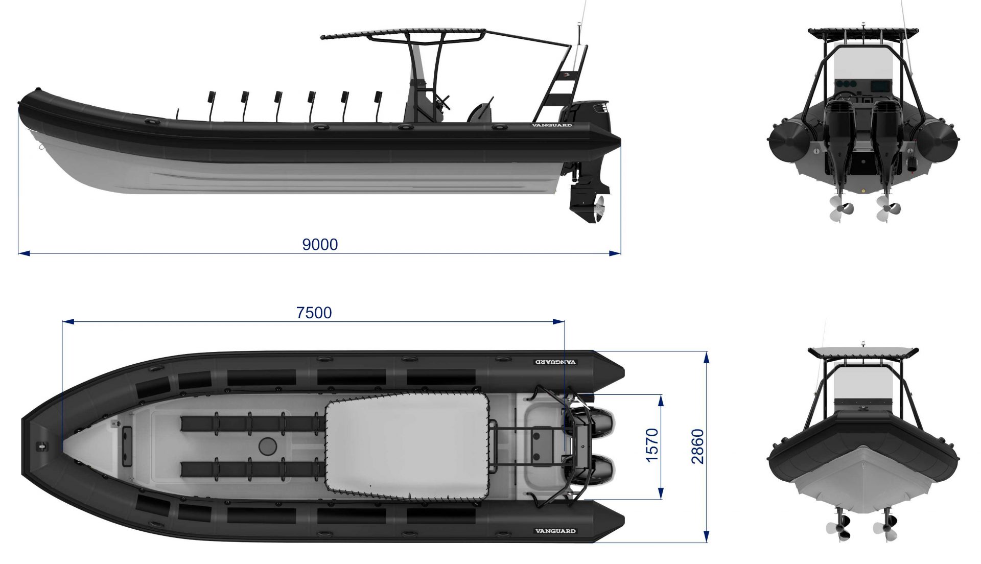 C’est le modèle le plus long. Il proportionne une grande vitesse. Son pont auto-videur est ample et spacieux pour l’équipage et les équipements de travail. Il a un réservoir intégré de 300 litres. Certifié pour mono ou bimoteur hors-bord jusqu’à 500 CV et 19 personnes.
